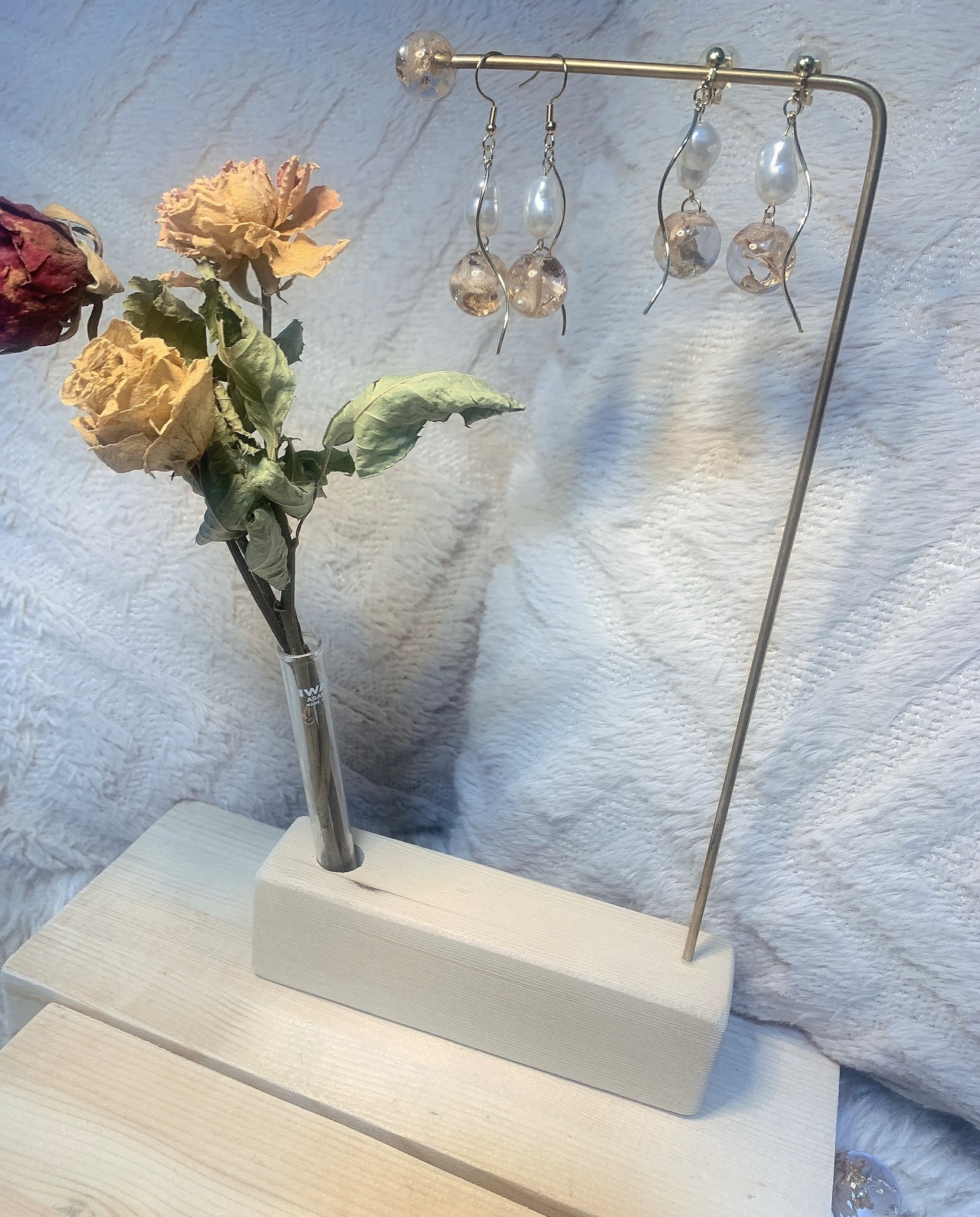 木屑イヤリング・パール&full moon