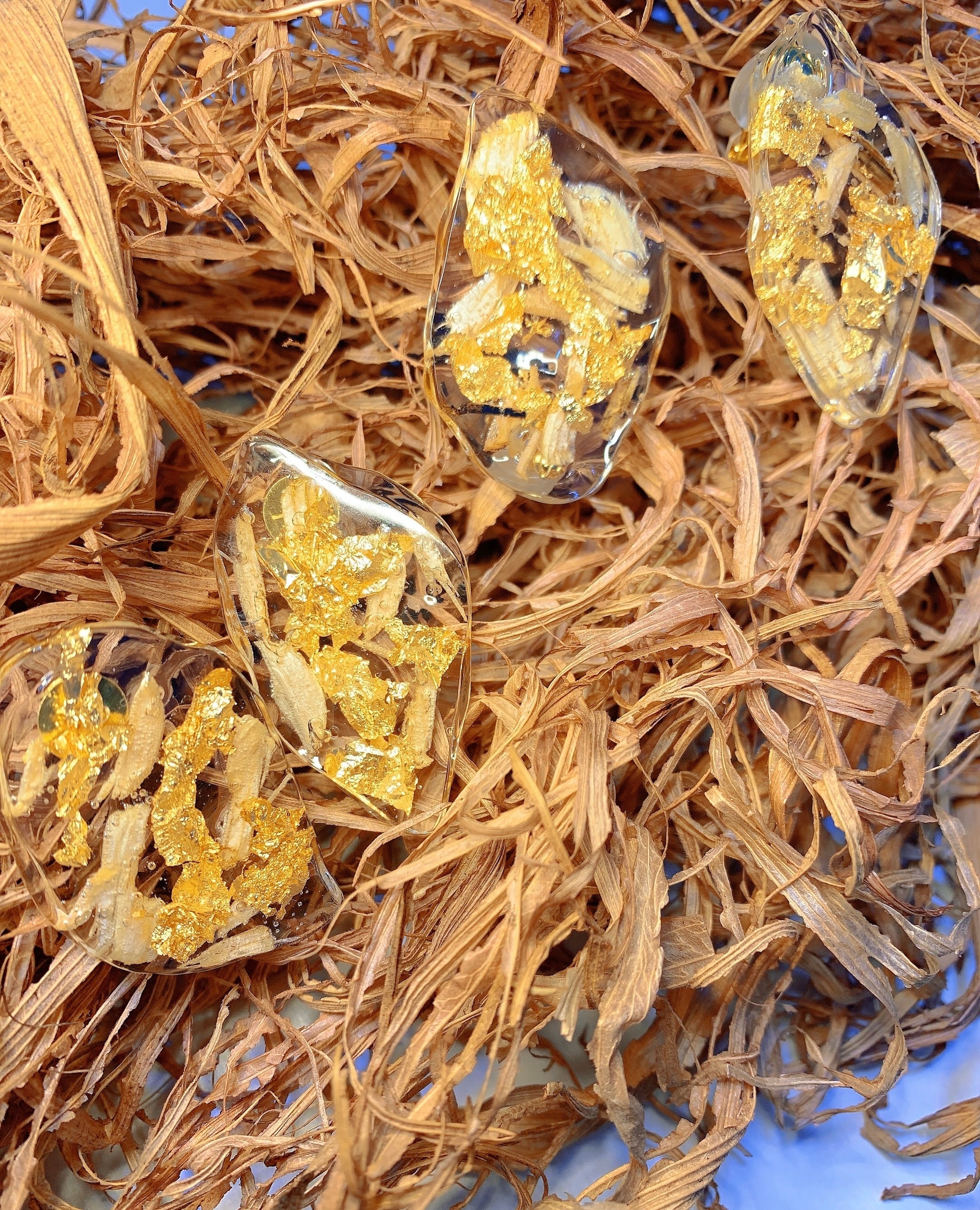 ゴールド×木の大ぶりアクセ•*